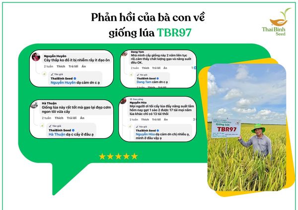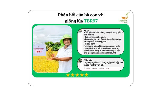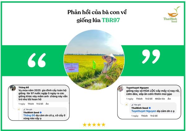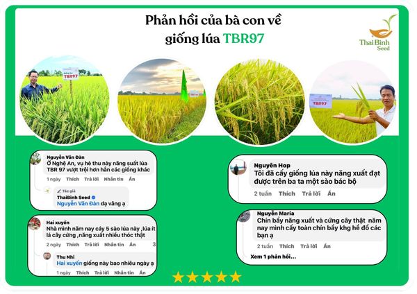 Những lời chia sẻ mộc mạc từ bà con sau vụ mùa TBR97, giản dị thôi, nhưng quý hơn mọi lời quảng cáo. Từng dòng bình luận chính là minh chứng rõ nhất cho chất lượng của TBR97 - giống lúa cứng cây, ngắn ngày, năng suất cao, dễ chăm sóc và được lòng nông dân khắp mọi miền.