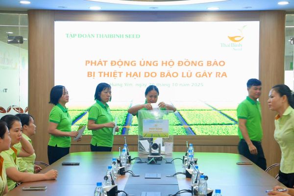 Hưởng ứng lời kêu gọi, từ ngày 20/10-31/10/2025 người lao động ThaiBinh Seed trên toàn quốc, từ trụ sở chính, các chi nhánh, công ty thành viên đã đồng lòng quyên góp ủng hộ với tinh thần sẻ chia, tương trợ. Mỗi phần đóng góp, dù nhỏ bé, đều chứa đựng tấm lòng nhân ái và trách nhiệm của người ThaiBinh Seed đối với cộng đồng. Chỉ trong ngày đầu tiên của đợt quyên góp, tập thể ThaiBinh Seed đã ủng hộ được hơn 100 triệu đồng, thể hiện tấm lòng nhân ái và tinh thần đoàn kết hướng về đồng bào vùng lũ.