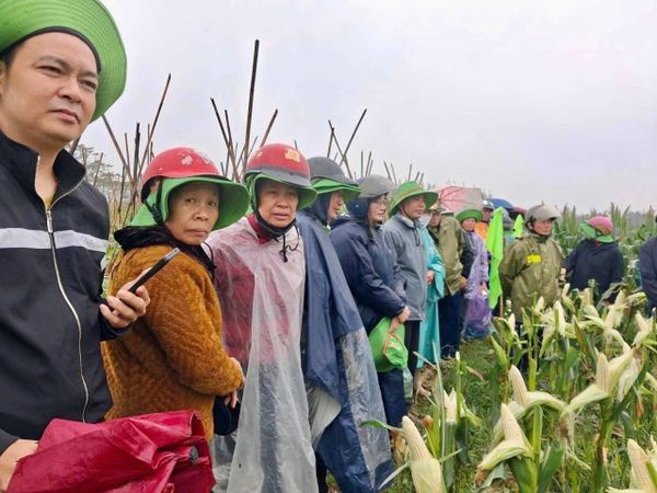 ”Tí các bác xem ngô nhà tôi xong là thương lái qua mua hết rồi, các bác tranh thủ ăn ngô cho nóng nhé” - ông Nguyễn Ngọc Kiểm ở xã Hoàng Cương, tỉnh Phú Thọ hồ hởi chia sẻ.
