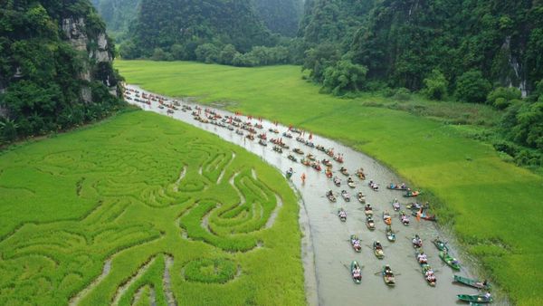 Trên cánh đồng 10.000m² ven dòng Ngô Đồng thơ mộng, thuộc khu du lịch Tam Cốc – Bích Động (xã Trường Yên, Ninh Bình), bà con đã gieo duy nhất giống lúa lai Thái Xuyên 111 của ThaiBinh Seed, đây là giống lúa gắn liền với bức tranh nghệ thuật “Cá vượt vũ môn” khổng lồ trong Tuần lễ Du lịch Ninh Bình 2025.