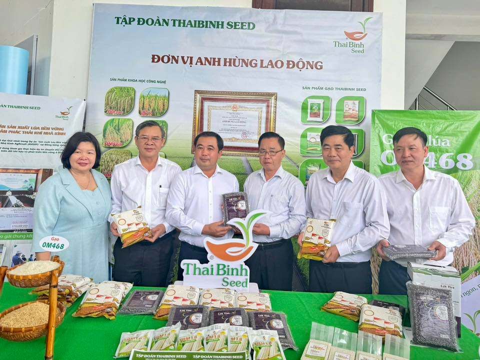 Tại hội nghị, gian hàng trưng bày của ThaiBinh Seed thu hút đông đảo đại biểu, chuyên gia và doanh nghiệp đến tham quan, tìm hiểu. Đặc biệt, ông Trần Đức Thắng – Ủy viên Bộ Chính trị, Bộ trưởng Bộ Nông nghiệp và Môi trường đã trực tiếp đến thăm gian hàng, tìm hiểu về các giống lúa chất lượng cao và các giải pháp canh tác giảm phát thải do Tập đoàn triển khai. AHLĐ Trần Mạnh Báo – Chủ tịch Tập đoàn đã trực tiếp đón tiếp và giới thiệu với Bộ trưởng cùng các đại biểu về những kết quả nghiên cứu, sản xuất giống và các mô hình sản xuất lúa bền vững mà Tập đoàn đang triển khai tại nhiều địa phương.