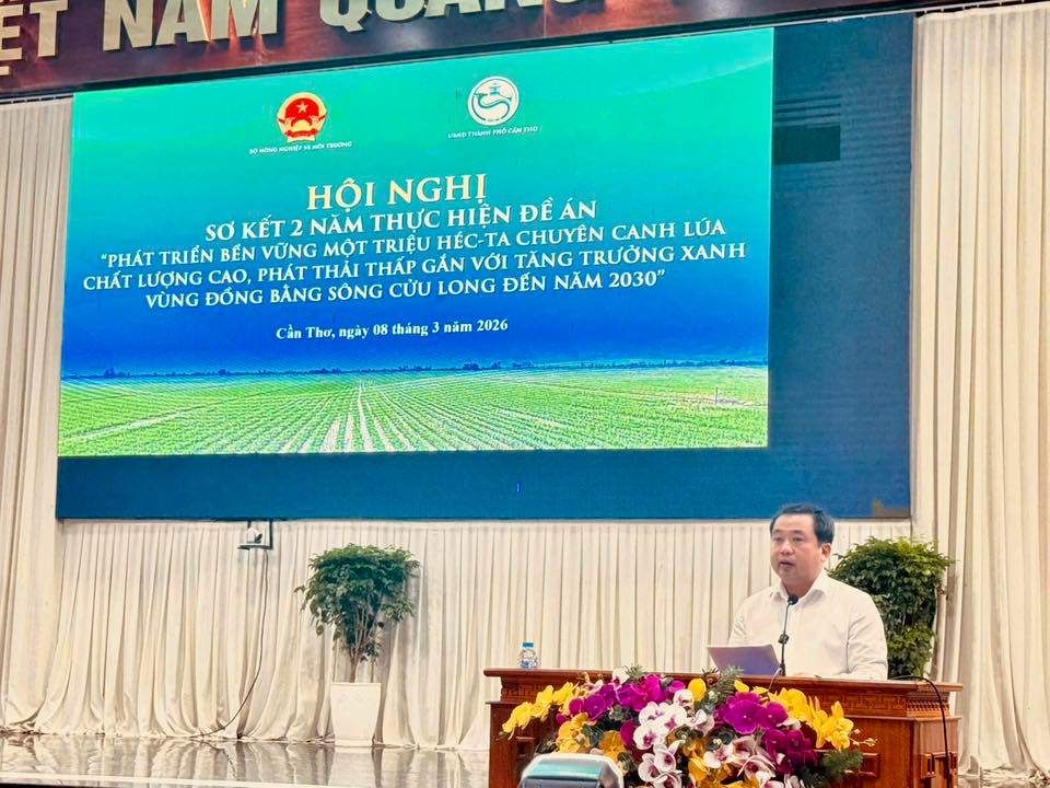 Ngày 8/3, tại phường Vị Thanh (TP Cần Thơ), Bộ Nông nghiệp và Môi trường tổ chức Hội nghị sơ kết hai năm thực hiện Đề án, nhằm đánh giá kết quả triển khai và định hướng mở rộng mô hình sản xuất lúa gạo bền vững trong thời gian tới.