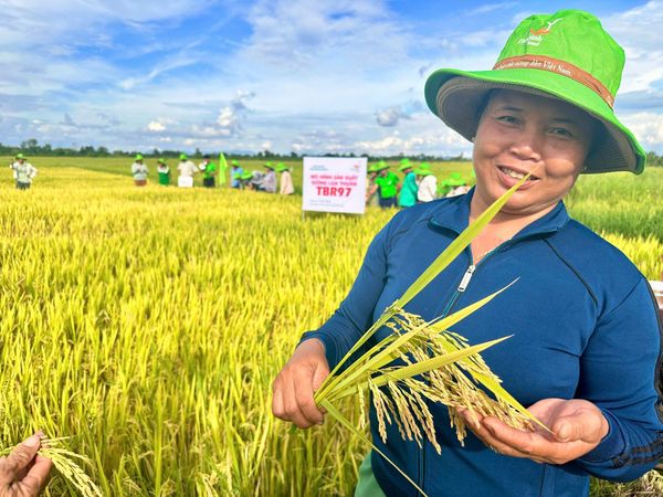 Cô Răm vui mừng kể: “Tôi thấy giống TBR97 cứng cây, hầu như không có sâu bệnh, gạo thì ăn ngon. Vụ này mới có 2 hộ trồng thôi, vậy mà sau mấy ngày mưa to, lúa vẫn đứng vững, bông trổ đều, hạt chắc vàng ươm. Bà con đi qua ai cũng trầm trồ, khen lắm, tôi cũng mừng quá chừng.”