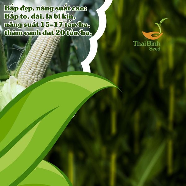 Bắp đẹp, năng suất cao: Bắp to, dài, lá bi kín, năng suất 15–17 tấn/ha, thâm canh tốt đạt 20 tấn/ha.
